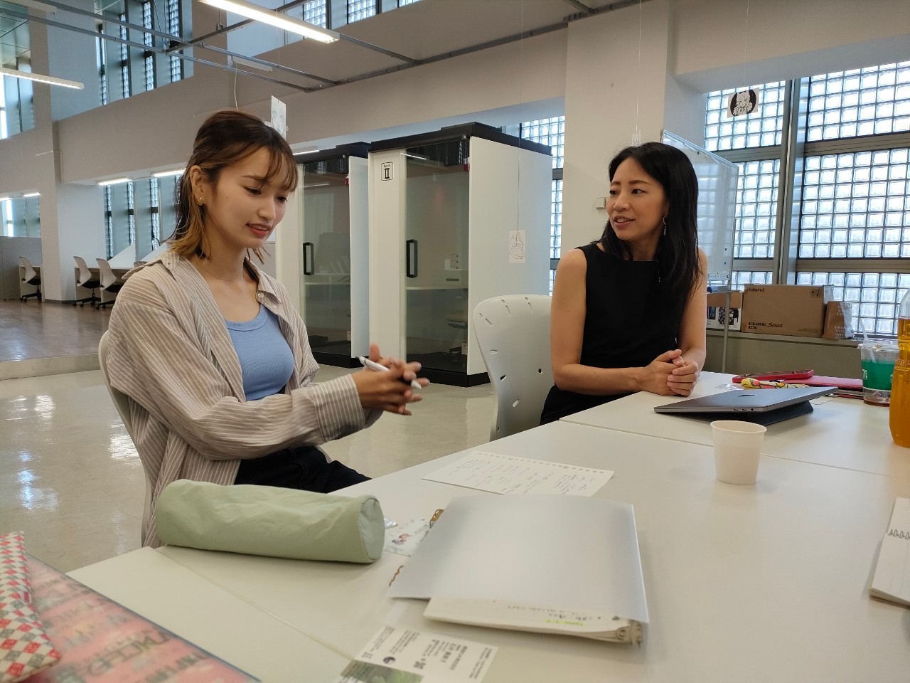 山田さんはすでに「てるたまり」さんとしてプラッツ習志野で今年5月からワークショップを開催されているほか、7月からはヒトコマ雑貨市で商品を販売されています。今後の発展のさせ方に悩んでいるとおっしゃっていましたが、「なぜ加賀てまりをやろうと思ったのか?」というお話が本当に素敵でした。いろいろお話をしている中でさまざまな手段が見つかりましたが、やはりモノを売るだけでなく背景のストーリーが本当に素敵なので、ぜひご自身のストーリーとセットで今後事業を展開していってほしいなと思いました。(同じ北陸出身者として個人的にも泣きそうになってしまうくらい素敵なストーリーでした!)