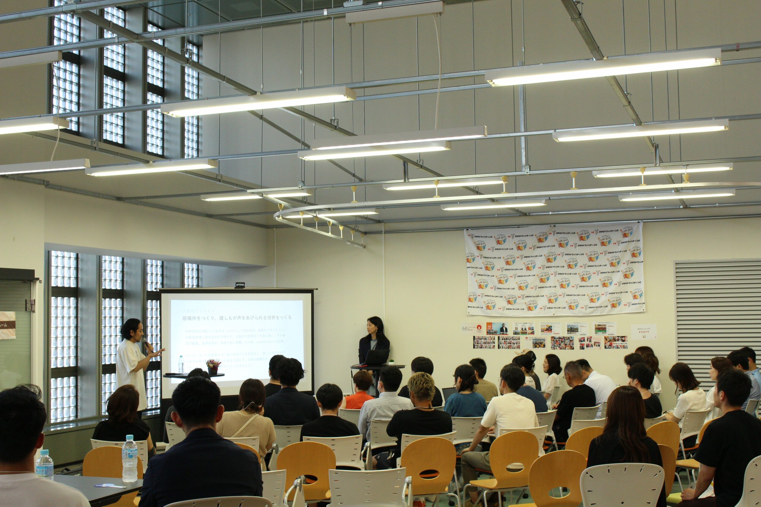 7/6(木)16時より、株式会社CAMPFIRE 代表取締役の家入一真氏にお越しいただき、アントレプレナーシップセミナーとCHIBA-LABO Meetupを開催いたしました。当日は50名を超える参加者の皆様にお越しいただき、CHIBA-LABOがたくさんの“熱い”思いにあふれた一日となりました。今回のイベントは2部構成で開催されましたので、各部ごとのレポートを写真多めでお伝えしていきたいと思います。